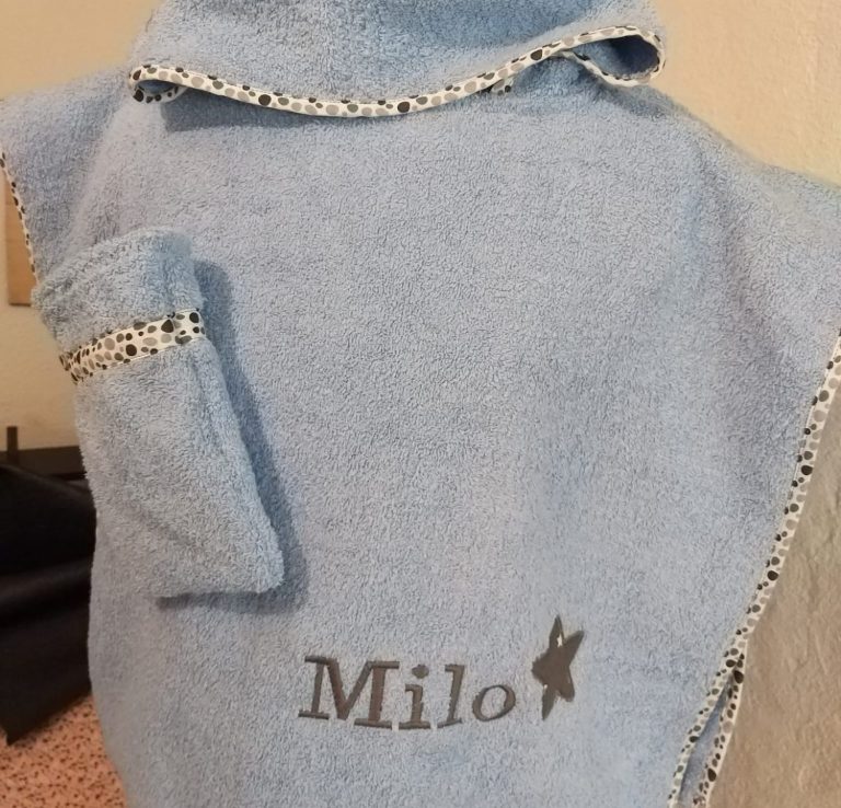 Mon moment préféré ? C’est l’instant où je personnalise vos bavoirs, capes de bain ou doudous. Un prénom brodé, un mot doux murmuré sur le tissu... Je transforme chaque création en un souvenir gravé, idéal pour vos listes de naissance ou pour offrir un cadeau qui a du sens.