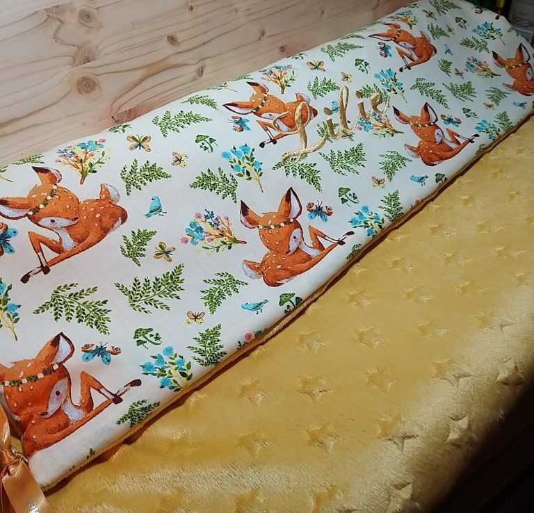 Les matières : Un combo Oeko-Tex ultra-moelleux : coton imprimé ou double gaze, doublé de doudou ou velours ras, avec un insert ouate pour le gonflant.
