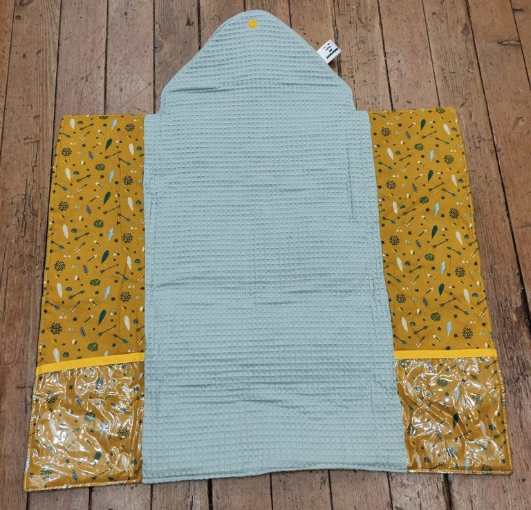 Les matières : Un côté en coton imprimé et un intérieur en éponge de coton ultra absorbante.