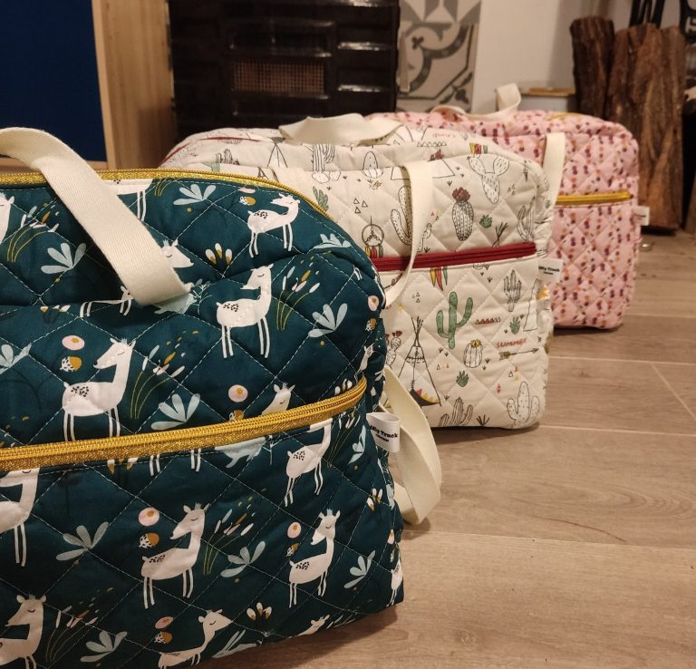 Les matières : Un coton matelassé ou imprimé de qualité, doux au toucher et facile à glisser dans le sac à dos.