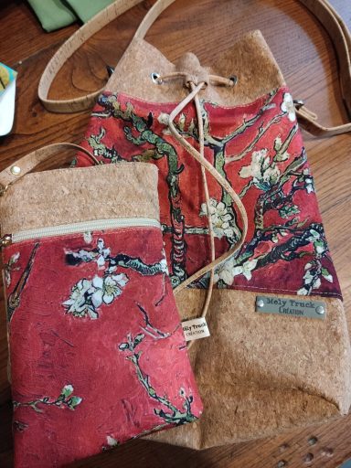 Les matières : L'élégance du liège mariée à la douceur du velours ou natté de coton imprimé.